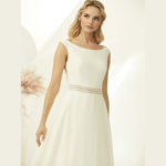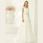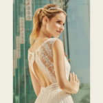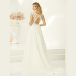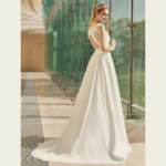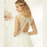 Vestido de Noiva corte A, decote em, costas abertas em renda, feito em sablé e renda com alta qualidade.