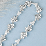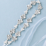 Cinto muito delicado e brilhante, feito com strass e pérolas, com duas fitas de organza.