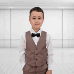 Conjunto elegante de 4 peças para criança, com casaco, camisa, colte e calças. Ideal para cerimonias. (Não inclui o laço)
