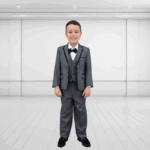 Conjunto elegante de 4 peças para criança, com casaco, camisa, colte e calças. Ideal para cerimonias. (Não inclui o laço)