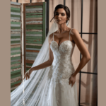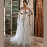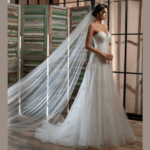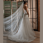 Vestido de Noiva corte semi, feito em renda, tule brilhante e padraría.
