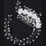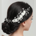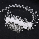 Toucado feito a mão, com pérolas, flores brancas e cristais.