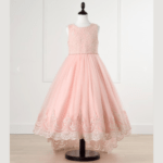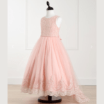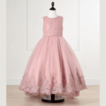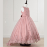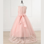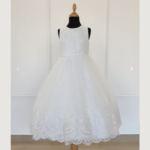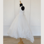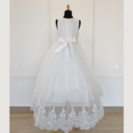 Vestido de Cerimônia , decote redondo, feito em tule e renda, com cauda. Ideal para primeira comunhão, batizado, menina das alianças e cerimonias.