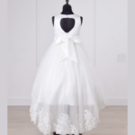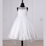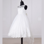 Vestido de Cerimônia , decote redondo, feito em tule e renda, com cauda. Ideal para primeira comunhão, batizado, menina das alianças e cerimonias.