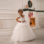 Vestido para criança de 2 a 12 anos, feito em tule e renda, decote em coração com alças, saia de duas camadas. Ideal para primeira comunhão, batizado, menina das alianças e cerimonias.