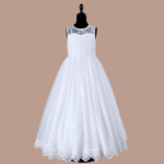 Vestido de Cerimônia para criança, decote redondo ilussão, saia com varias camadas, feito em tule e renda. Ideal para primeira comunhão, batizado, menina das alianças e cerimonias.
