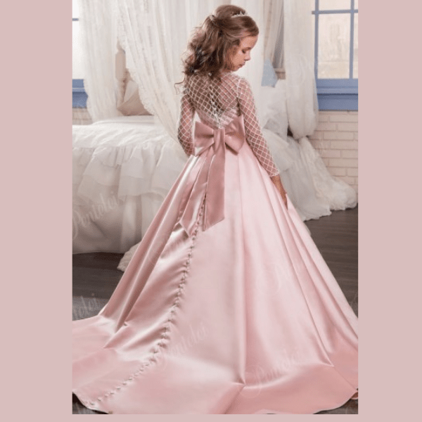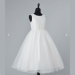 Vestido de Cerimônia , decote redondo, feito em tule e cetim com pérolas. Ideal para primeira comunhão, batizado, menina das alianças e cerimonias.