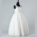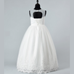 Vestido de Cerimônia longo, decote redondo, feito em tule e renda. Ideal para primeira comunhão, batizado, menina das alianças e cerimonias.