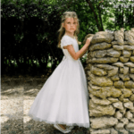 Vestido de Cerimônia longo, decote redondo, feito em tule e pedraria. Ideal para primeira comunhão, batizado, menina das alianças e cerimonias.