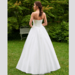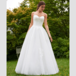 Maravilhoso vestido de noiva corte princesa cai cai, decote coração, feito em tule e renda, decorado com pedraría.