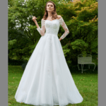 Maravilhoso vestido de noiva corte princesa, decote coração, com mangas, feito em tule e renda, decorado com pedraría.