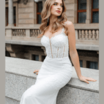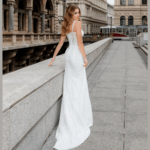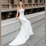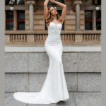 Vestido de Noiva sereia, decote cai cai, feito em tule e renda com pedraría.