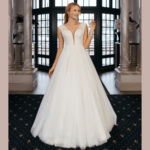 Vestido de Noiva corte princesa, feito em renda e tule com purpurinas.