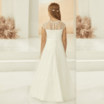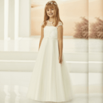 Vestido de criança , decote redondo, feito em tule e renda. Ideal para primeira comunhão, batizado, menina das alianças e cerimonias.
