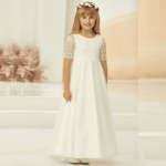 Vestido de criança , decote redondo, feito em tule e renda. Ideal para primeira comunhão, batizado, menina das alianças e cerimonias.