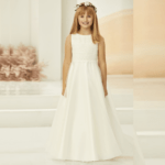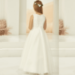 Vestido de criança , decote redondo, feito em organza e renda. Ideal para primeira comunhão, batizado, menina das alianças e cerimonias.