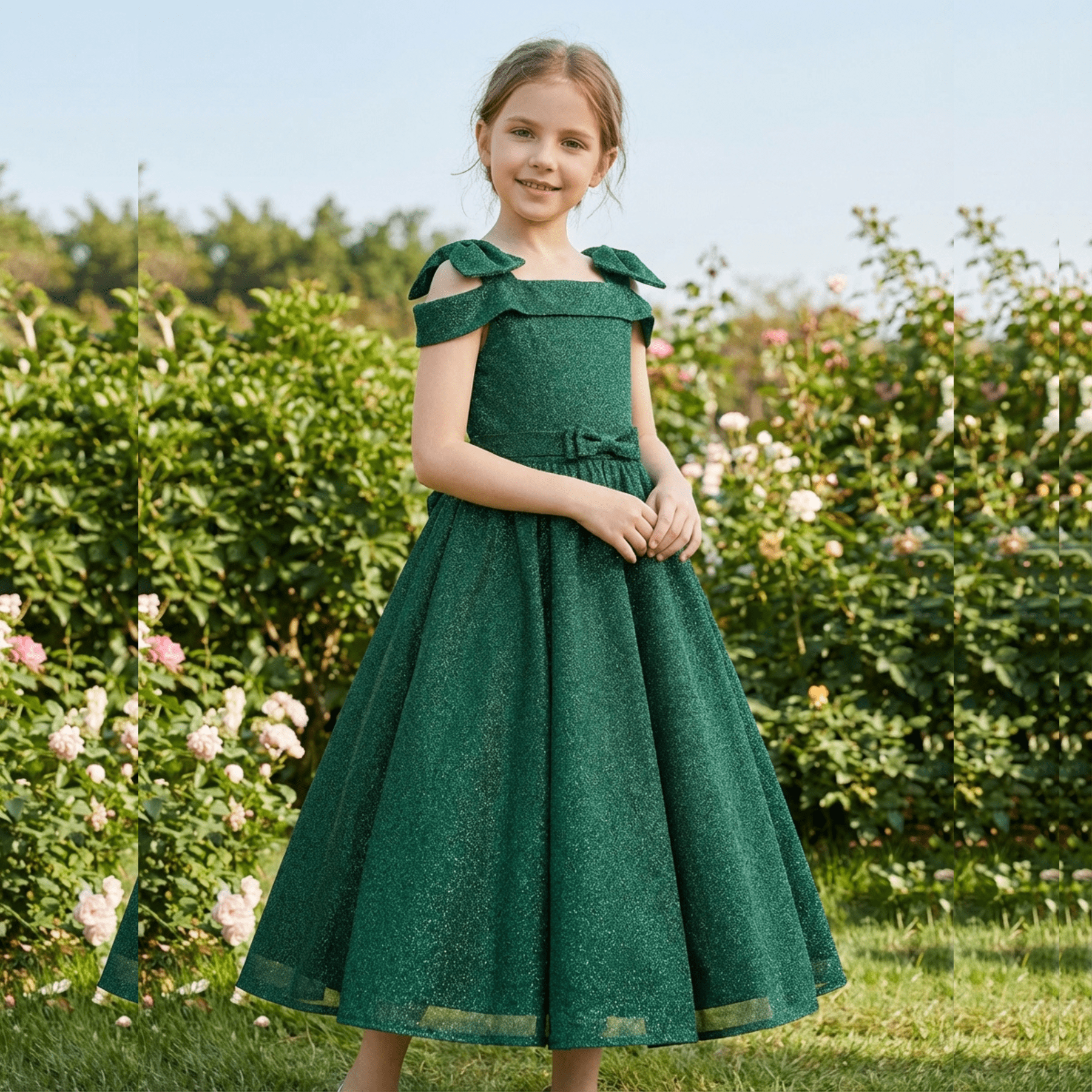 Apresentamos este exclusivo vestido de festa para menina e adolescente, confeccionado em tecido brilhante.