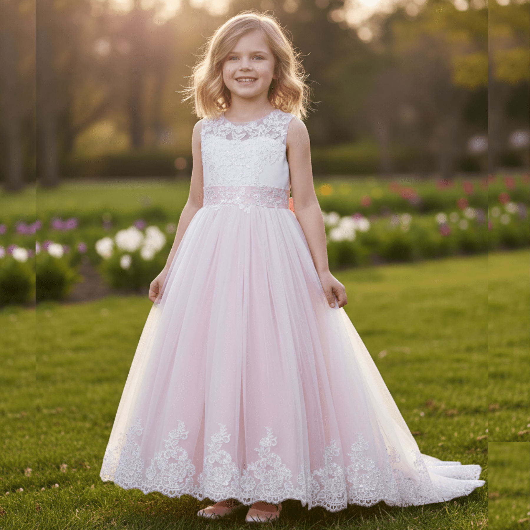 Apresentamos este exclusivo vestido de festa para menina e adolescente, confeccionado em tule e renda.