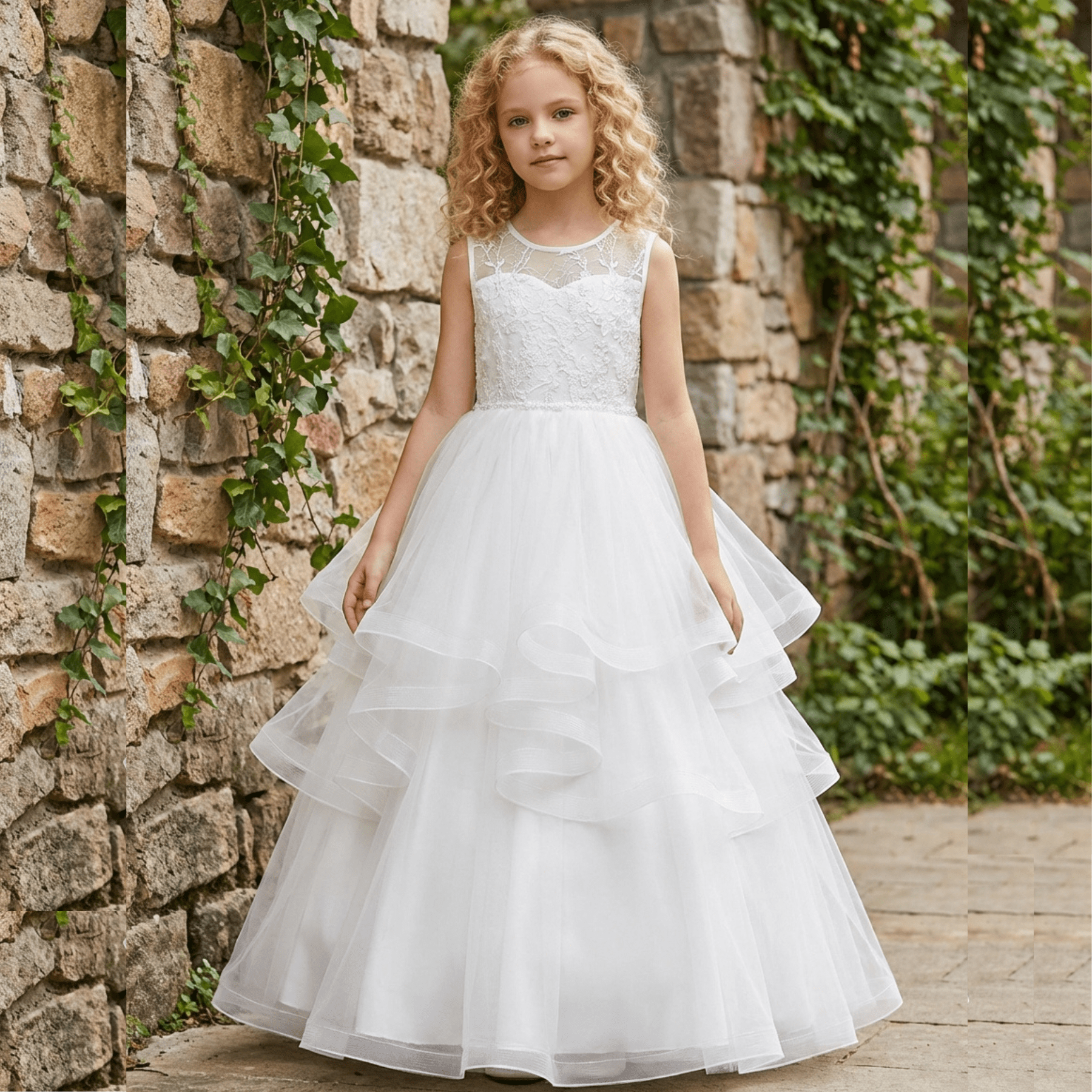 Apresentamos este exclusivo vestido de festa para menina e adolescente, confeccionado em tule e renda.