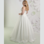 Vestido de Noiva corte A, decote cai-cai, feito em tule