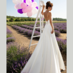 Vestido de Noiva corte A, decote cai cai, feito em sablé.