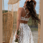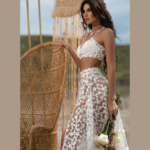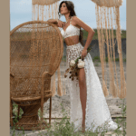 Conjunto de saia e top para Noiva, feito em tule com aplicações 3D.