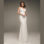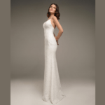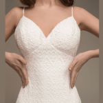 Vestido de Noiva corte sereia, feito em crepe stretch e guipure.