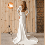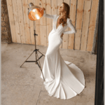 Vestido de Noiva corte sereia, fabricado em crepe stretch.