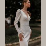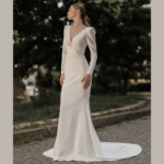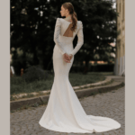 Vestido de Noiva corte sereia, fabricado em crepe.