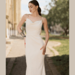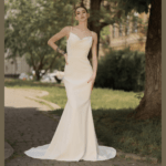 Vestido de Noiva corte sereia, fabricado em crepe stretch.