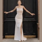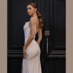 Vestido de Noiva corte sereia, fabricado em crepe stretch.