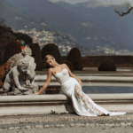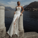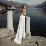 Vestido de Noiva corte sereia, fabricado em crepe stretch, tule e rendas.