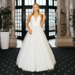 Vestido de Noiva corte princesa, feito em chiffon e tule.