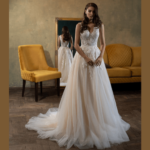 Vestido de Noiva corte princesa, feito em renda e tule brilhante.