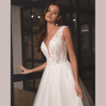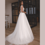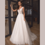 Vestido de Noiva corte A, feito em renda e tule.