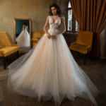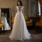Vestido de Noiva corte princesa, feito em renda e tule brilhante.