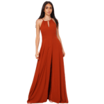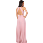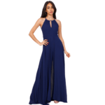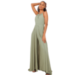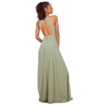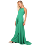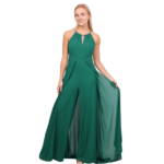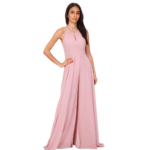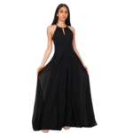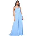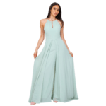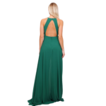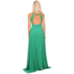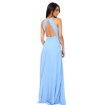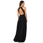 O decote halter eleva o visual, conferindo elegância que alonga o pescoço e realça os ombros de forma escultural. Nas costas, o design revela uma sensualidade refinada com um decote profundo, perfeitamente rematado por um fecho invisível posterior que garante um ajuste de precisão e uma estética limpa, sem interrupções.