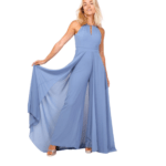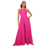 Desenhada para a mulher que deseja uma presença cénica e inesquecível, este macacão de corte largo destaca-se pela sua sobre-saia fluida, que cria um movimento majestoso e uma silhueta digna de passadeira vermelha.