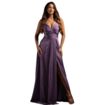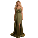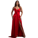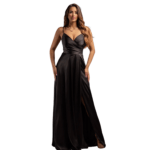 As alças delicadas realçam a linha dos ombros, conferindo uma feminidade subtil e sofisticada, com abertura lateral estratégica, e um detalhe audaz que não só facilita o movimento com fluidez, como adiciona um ar de sensualidade requintada e moderna. Confecionado com tecidos que garantem um brilho discreto e uma textura suave ao toque, mantendo a estrutura perfeita da saia longa durante todo o evento. Uma peça que abraça as curvas com precisão, garantindo uma presença magnética.