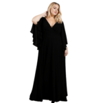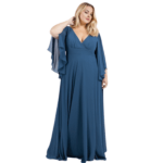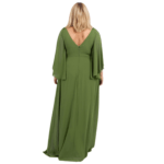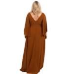 Este vestido de cerimónia longo é uma ode à feminilidade contemporânea. Desenhado para a mulher que não tem medo de se destacar, o modelo combina um decote frontal em V pronunciado — que alonga a silhueta de forma magistral — com o movimento dramático e luxuoso das nossas mangas mariposa, o verdadeiro elemento “uau” desta peça, as aberturas laterais nas mangas permitem que os braços surjam de forma subtil, criando um efeito de capa fluida que dança com o vento e com os seus movimentos.