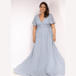 Este vestido longo de cerimónia, desenhado especificamente para a silhueta Maxi Plus Size, é o equilíbrio perfeito entre o design de alta costura e o conforto absoluto. O decote frontal em V pronunciado alonga a figura de forma escultural, conferindo uma sensualidade sofisticada que ilumina o rosto e o colo.