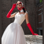 Vestido de Noiva corte princesa, feito em renda e tule.