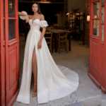 REF: XB-noelle Categorias: Corte A, Vestidos de Noiva Etiquetas: corpete em coração e espartilho, mangas bufantes em 4D, racha, simples