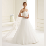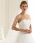 Lindo Véu de Noiva comprido de uma camada, com borde em cetim.