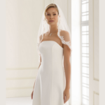 Lindo Véu de Noiva curto de uma camada, com renda em volta.