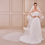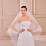 Lindo Véu de Noiva de duas camadas, com cristais em volta.