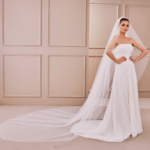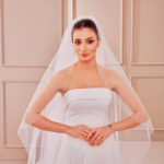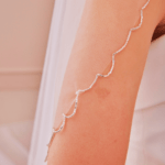 Lindo Véu de Noiva de uma camada, com miçangas de prata em volta.